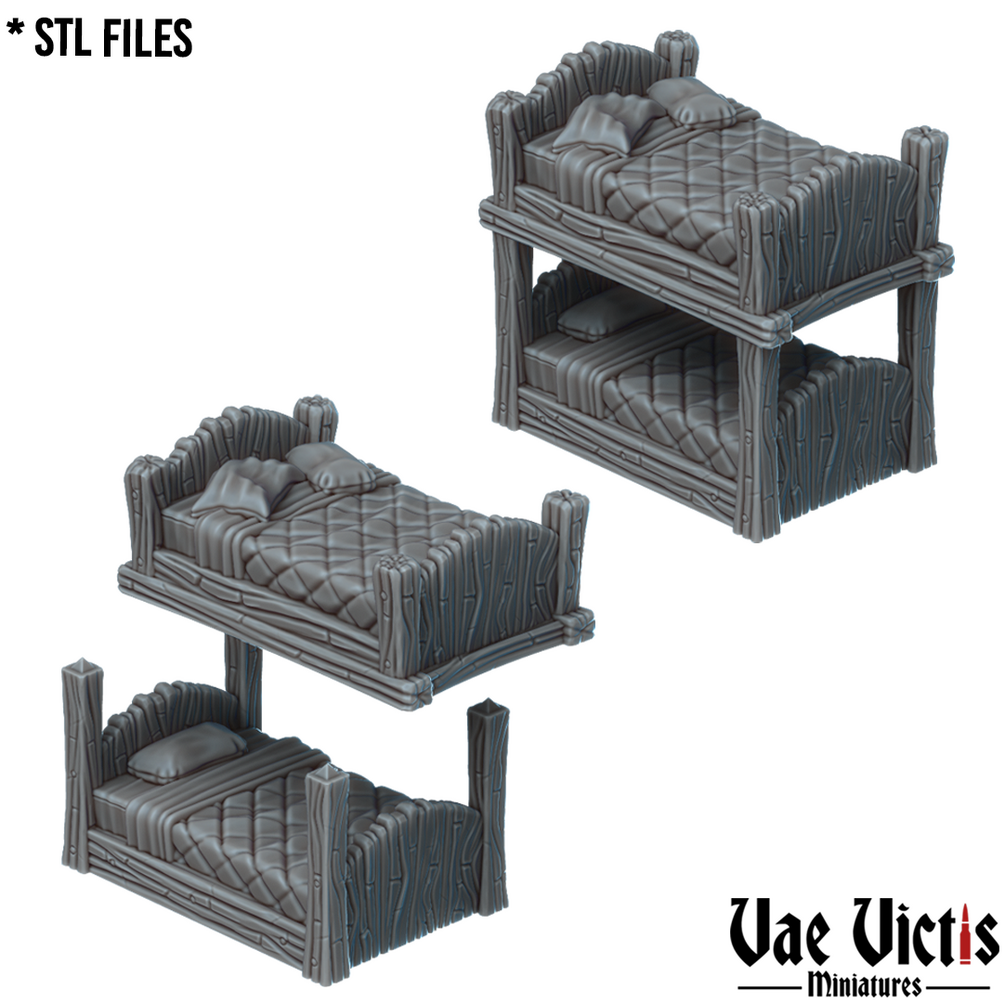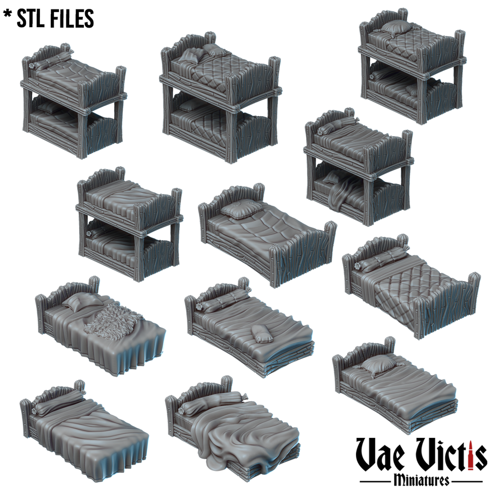 The Beds€4€4https://schema.org/InStockeurvaevictisminiaturesvaevictisminiatures This set includes 7 simple beds This set includes modular bunks : 5 lower sections, 4 middle sections , 5 top sections. Supportless models ! Join us on our Patreon !Add to cartSize203 MBAdd to wishlist New wishlistShareShare on XShare on Facebook Copy linkCopy product URL